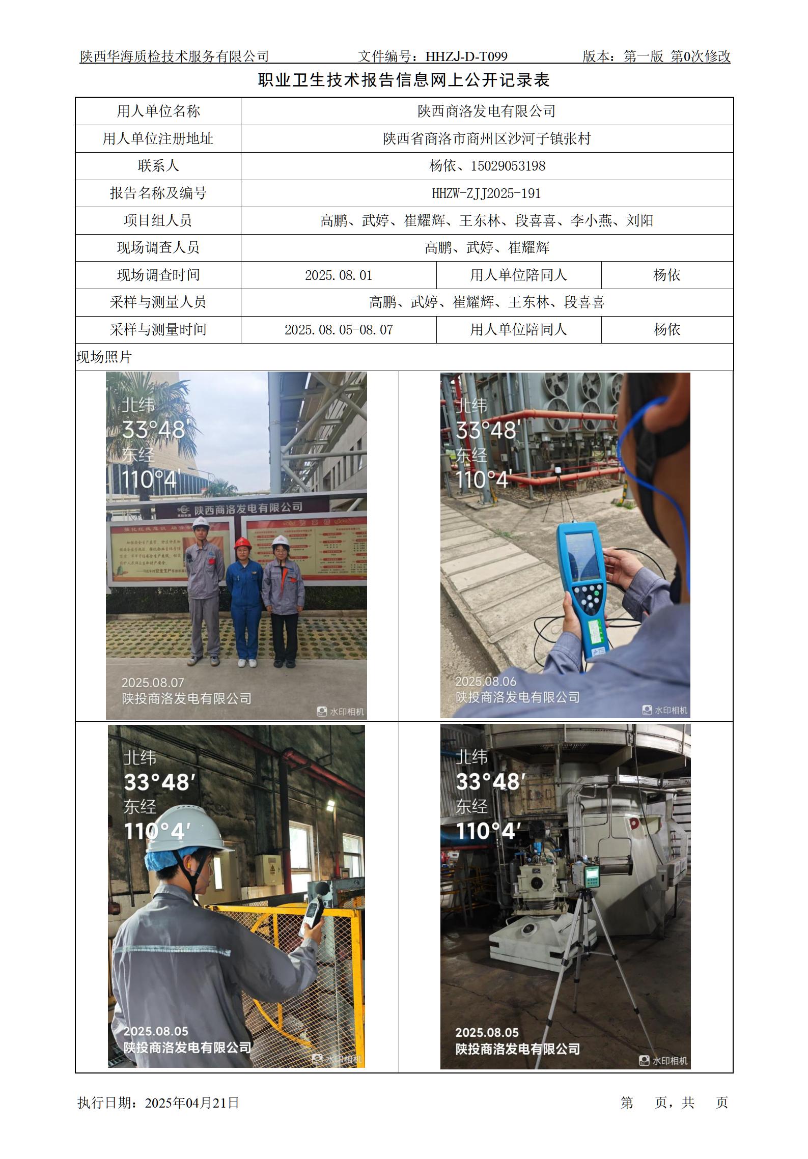 陕西商洛发电有限公司定期检测职业卫生技术报告网上公示信息表