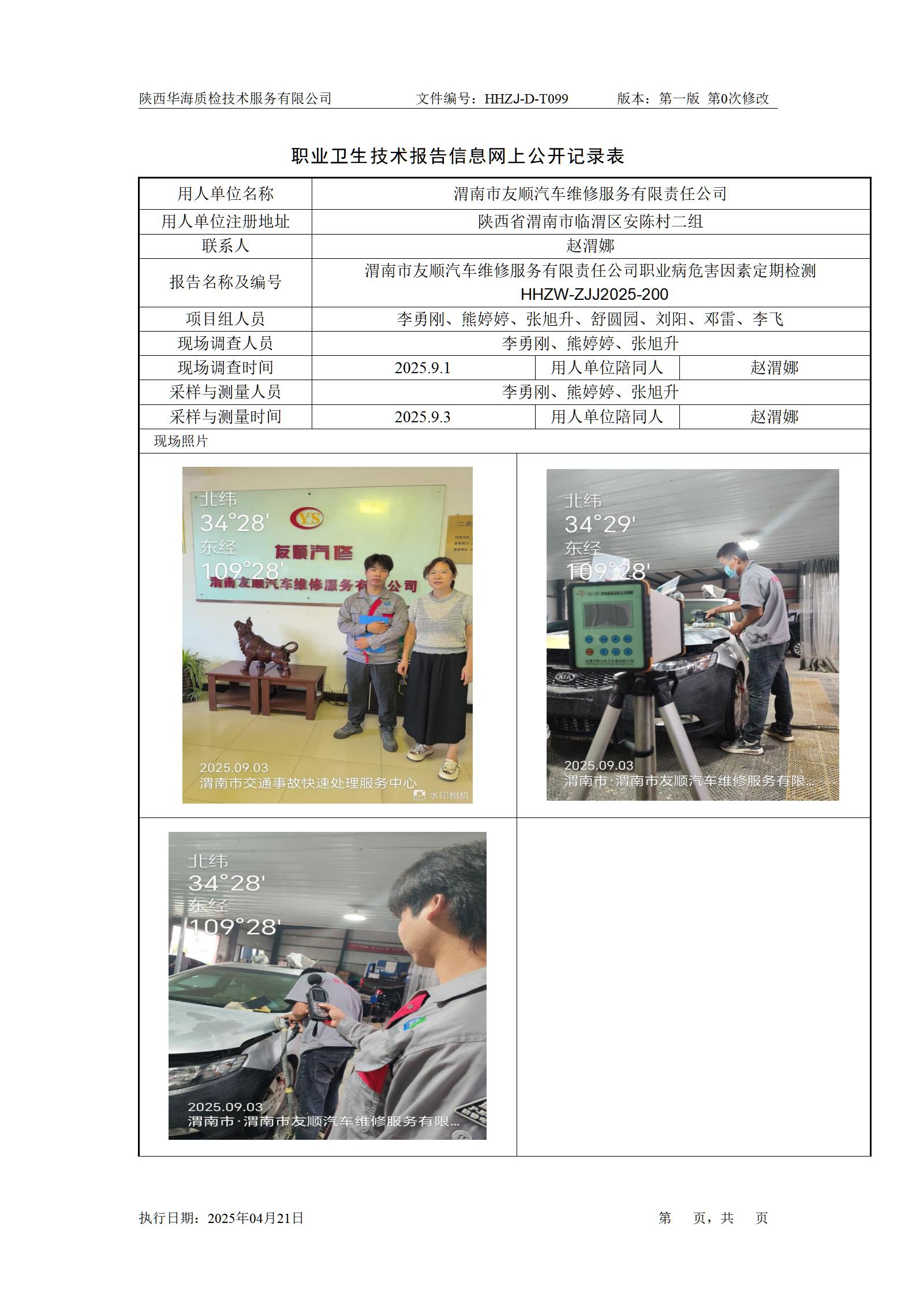 渭南市友顺汽车维修服务有限责任公司定期检测职业卫生技术报告信息网上公开记录表