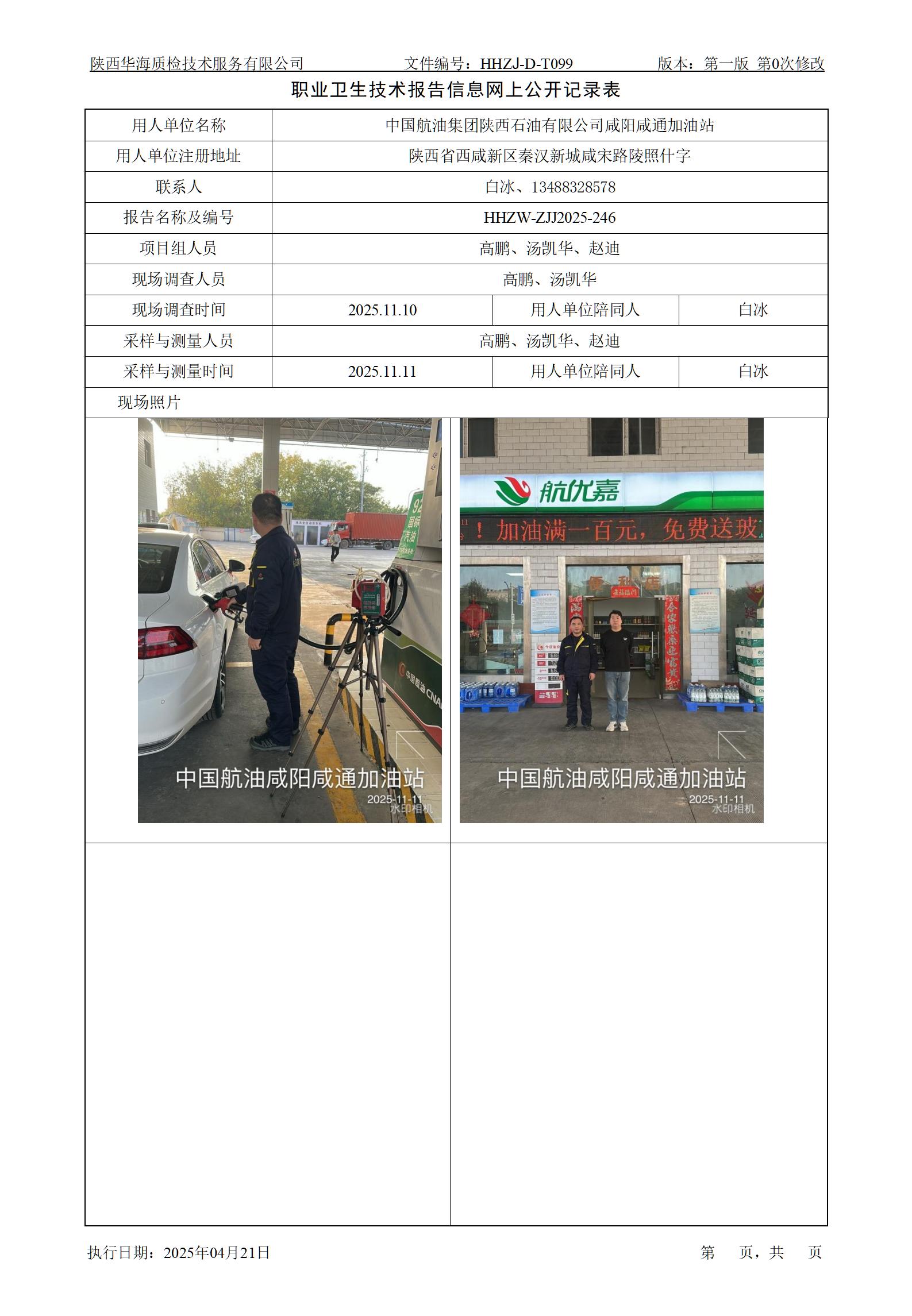 中国航油集团陕西石油有限公司咸通路加油站定期检测职业卫生技术报告信息网上公开记录表