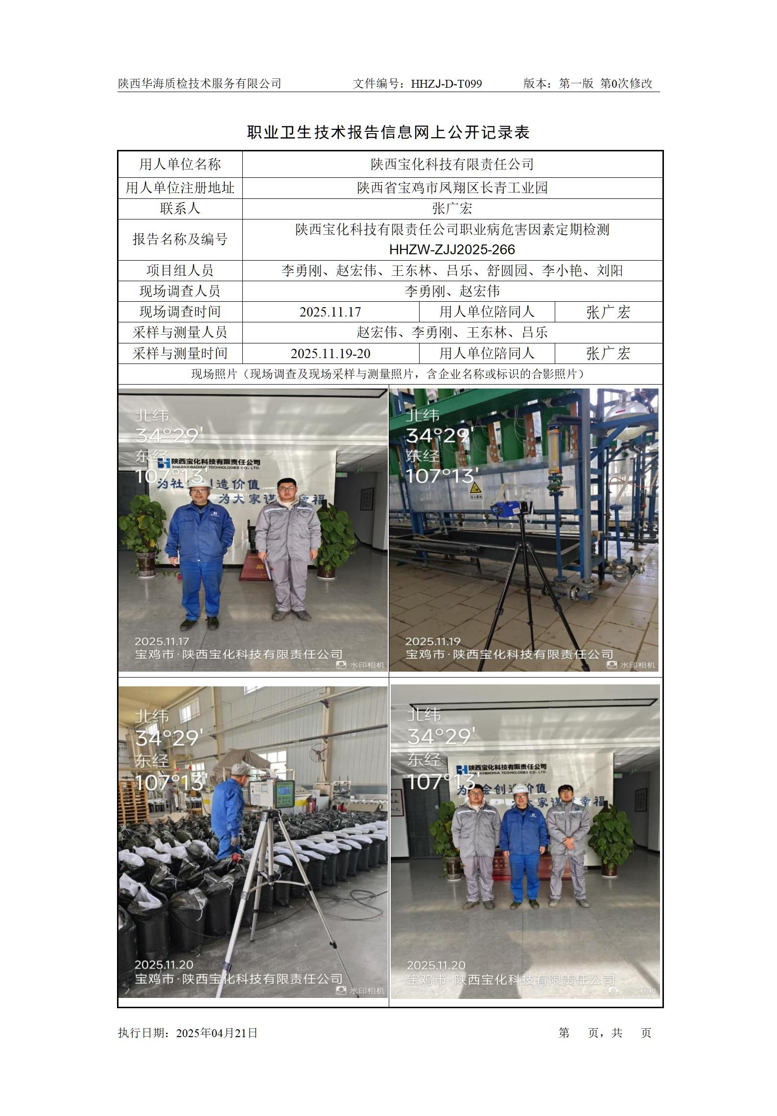 陕西宝化科技有限责任公司定期检测职业卫生技术报告信息网上公开记录表