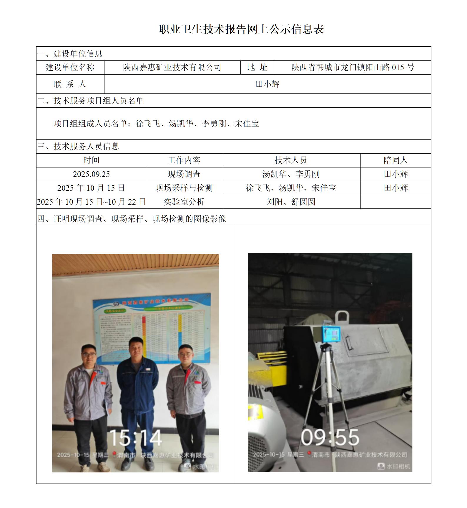 陕西嘉惠矿业技术有限公司定期检测职业卫生技术报告信息网上公开记录表