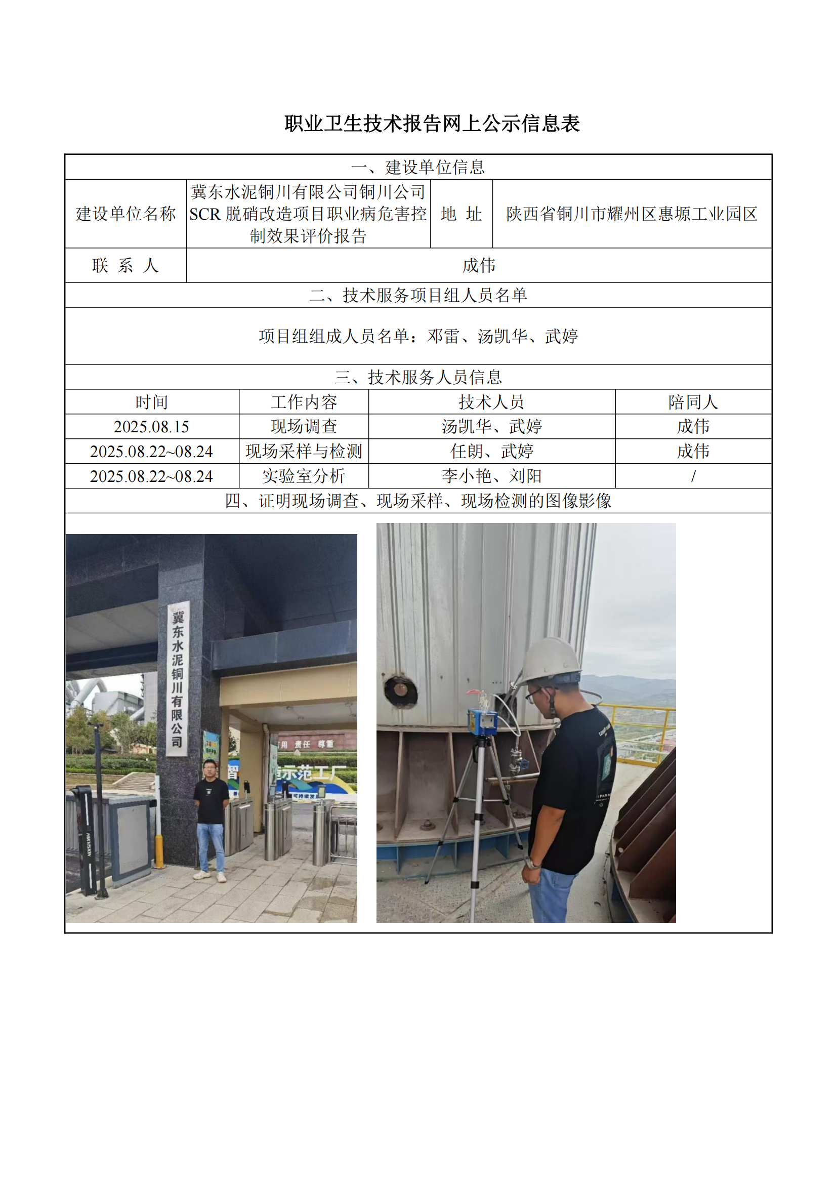 冀东水泥铜川有限公司铜川公司SCR脱硝改造项目职业病危害控评价报告