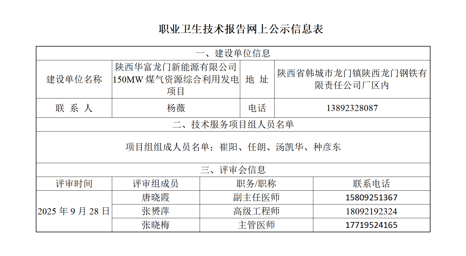 陕西华富龙门新能源有限公司150MW煤气资源综合利用发电项目预评
